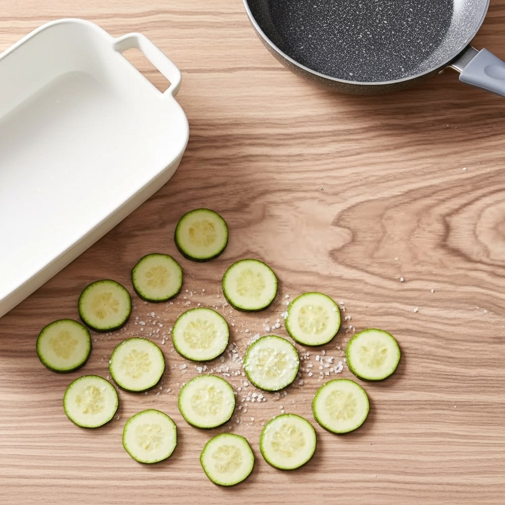 - Prep the zucchini or eggplant: Start by slicing the zucchini or eggplant lengthwise into thin, even slices. Uniform thickness helps the lasagna bake evenly. Lay the slices out on a tray or paper towels and sprinkle lightly with salt. Let them rest for about 10 minutes — this step draws out excess moisture, which is key to preventing a watery lasagna. After resting, pat the slices very dry with paper towels. Lightly pan-sear them in a dry skillet or bake briefly until just softened. This pre-cooking step ensures the final dish holds its structure.